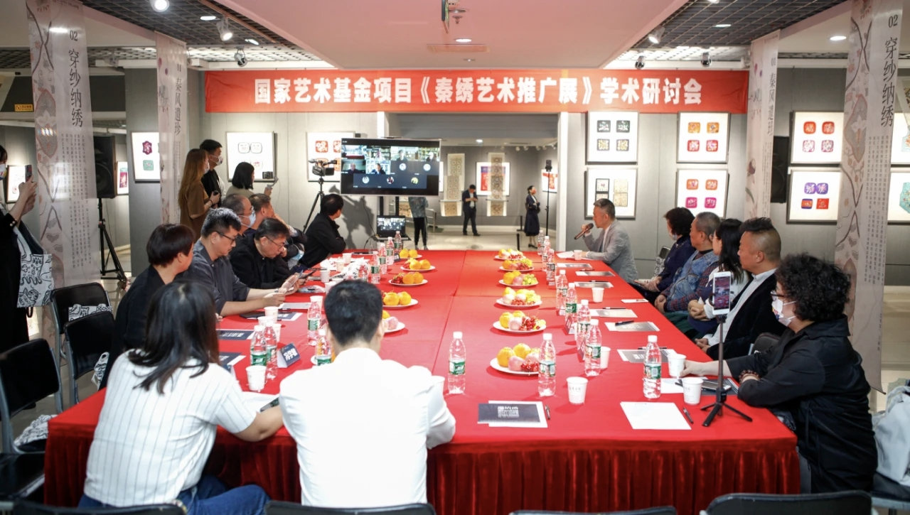 2、艺术学院分别于2022年5月10日在陕西亮宝楼艺术博物馆二楼举办秦绣艺术学术研讨会,学校相关领导和省内兄弟院校师生代表,以及我院师生五十余人参加了会议;2022年11月19日,通过线下线上结合的形式,举办秦绣艺术推广交流作品展兴城站学术研讨会,我院师生50余人参加了研讨会;