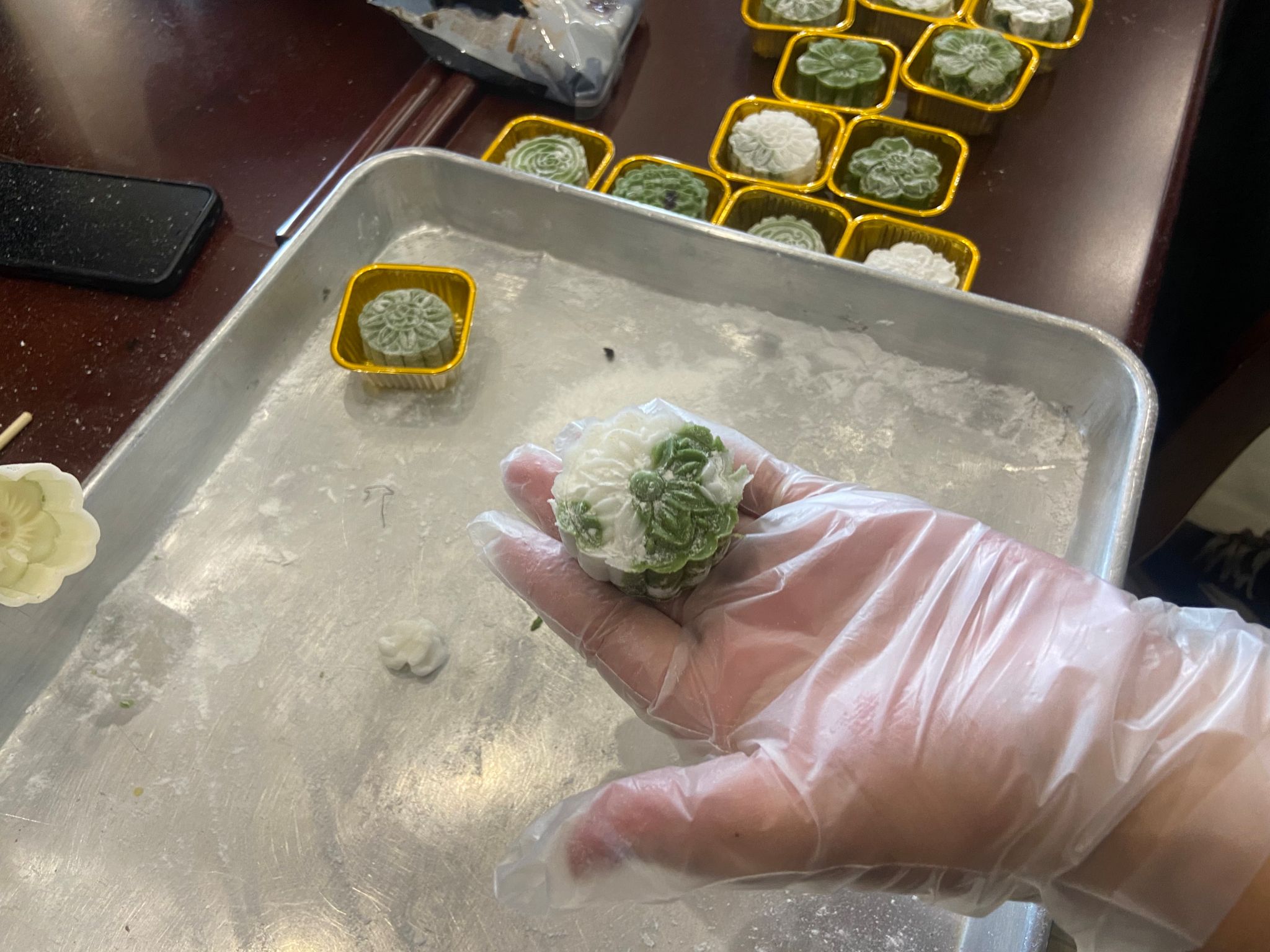 活动伊始,学工部心理健康教育中心刘朋老师为大家详细讲解了中秋节的习俗渊源,并现场演示了冰皮月饼的制作流程,从揉制饼皮、称量馅料,到压模成型,每一个步骤都讲解得细致入微。同学们聚精会神,跃跃欲试。