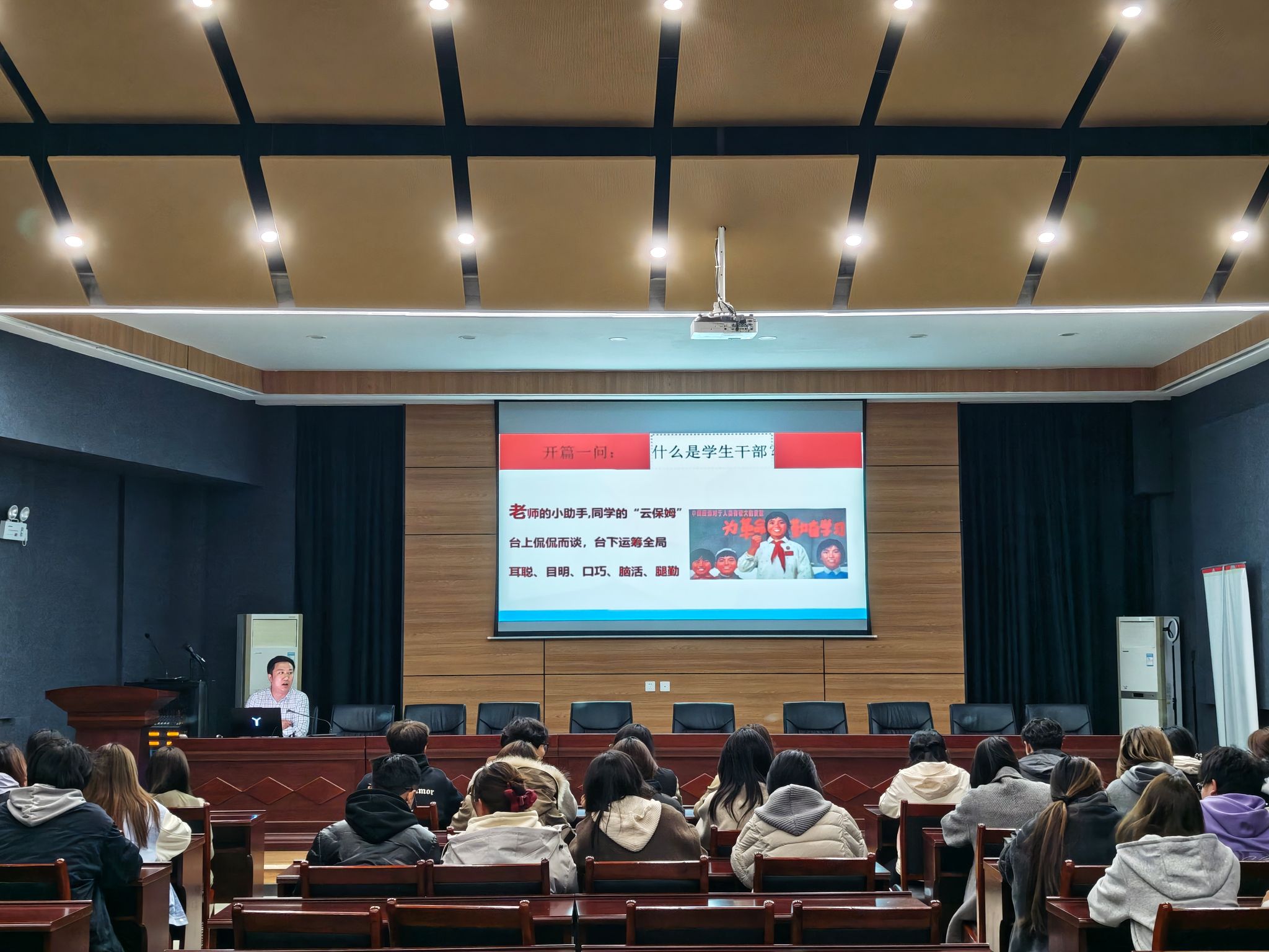 为进一步加强学院班级干部队伍能力和作风建设,加强班委队伍管理意识,充分发挥班级干部带头示范作用和引领能力,有效促进班风、学风建设,10月22日,学院2025级开展了班干素质能力提升专题培训。本次会议由2025级学生辅导员魏佳赟主持,2025级全体学生干部参加培训。