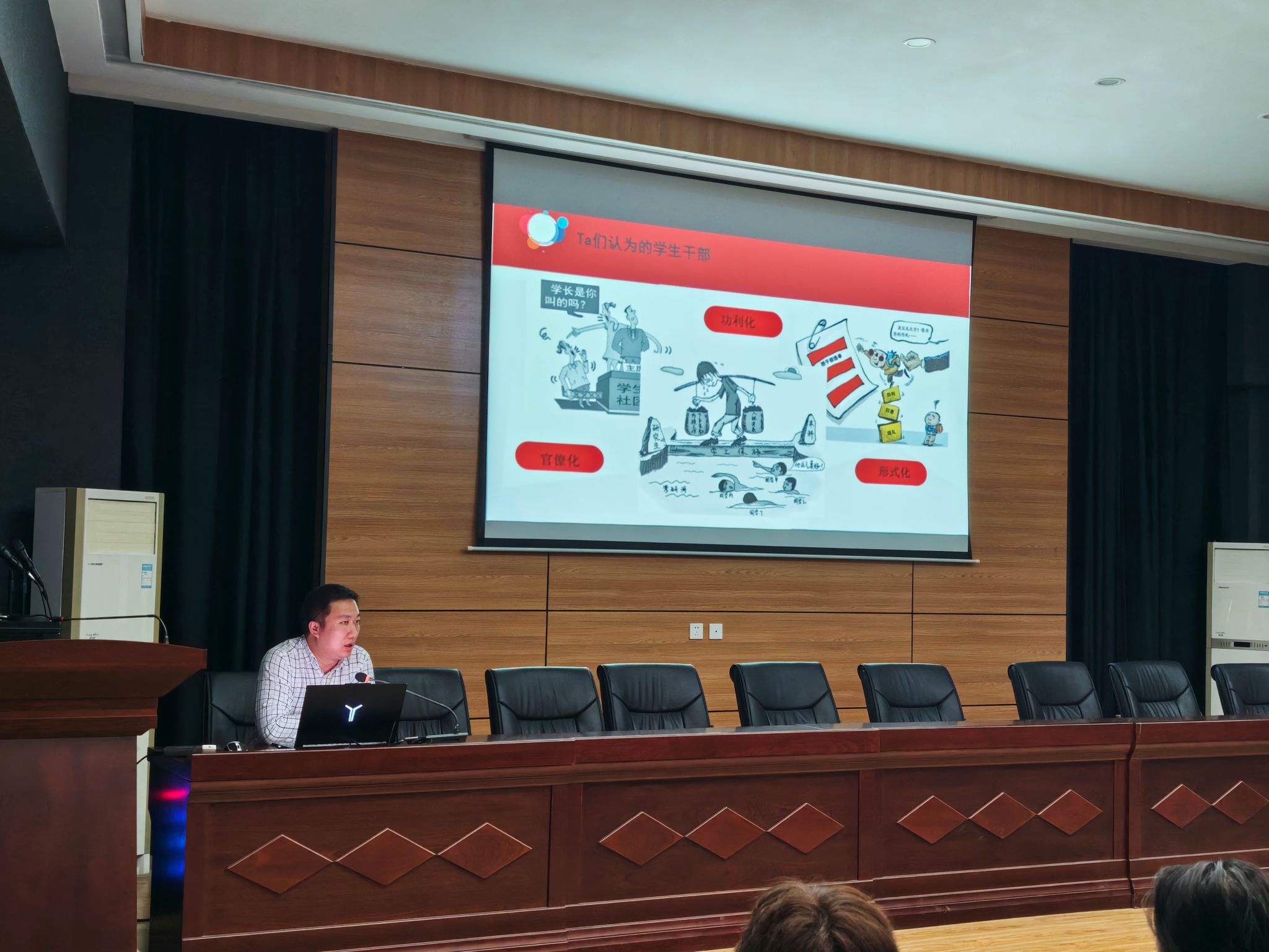 他强调学生干部要做到:增强“四力”——眼力准、脑力活、笔力强、脚力稳,涵养“四气”——朝气、静气、正气、底气,自觉抵制惰气、暮气、邪气,始终充盈青春应有的蓬勃朝气与奋斗精神。他向在座的学生干部提出要求:一是以理想照亮前行之路,做“眼中有光”的学生干部;二是以担当彰显初心使命,做“肩上有责”的学生干部;三是以吃苦锤炼过硬本领,做“手上有招”的学生干部;四是以奋斗书写青春答卷,做“脚下有路”的学生干部。