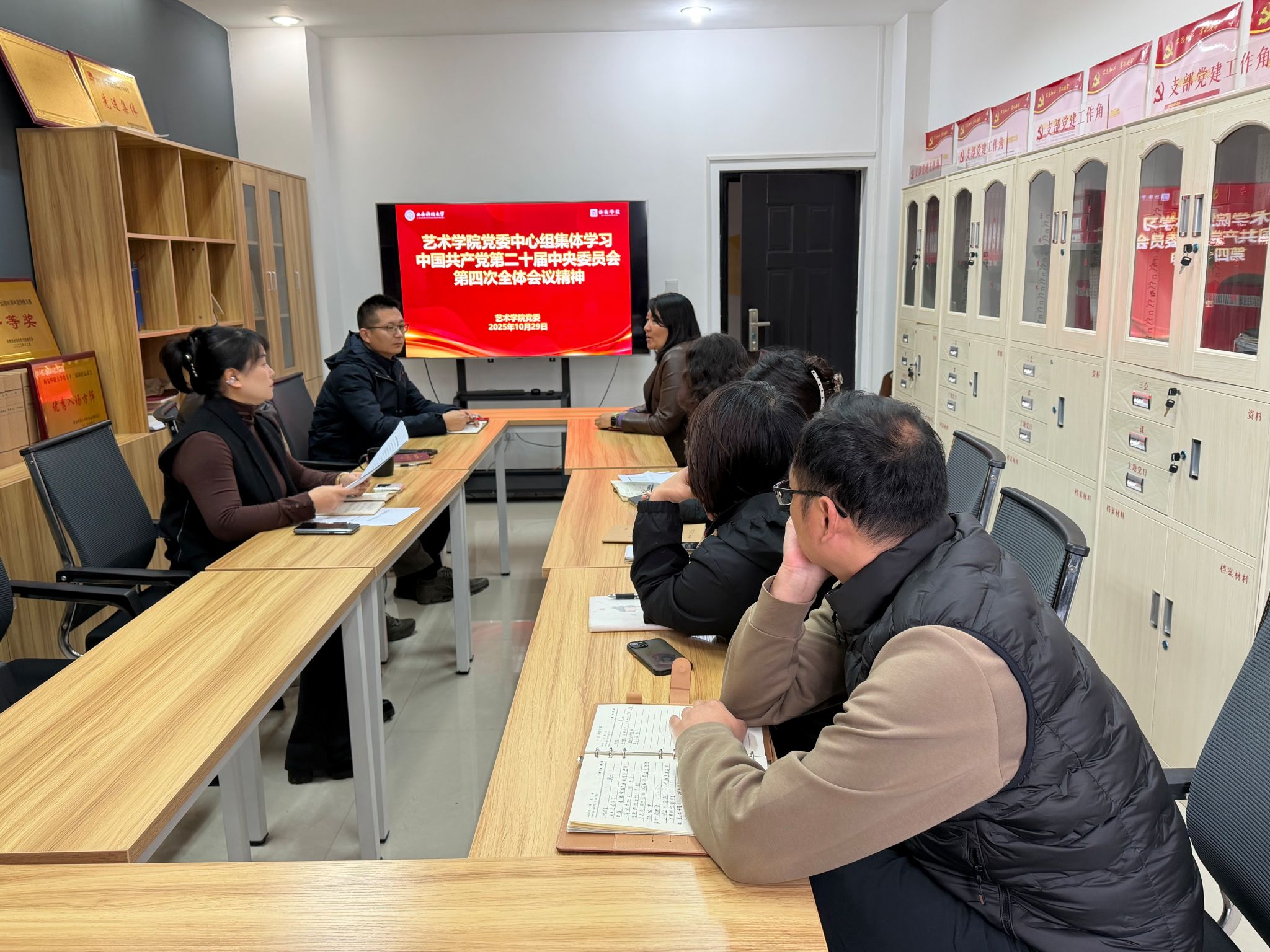 为深入学习贯彻党的二十届四中全会精神,10月29日,艺术学院党委理论学习中心组(扩大)召开集体学习会,专题学习党的二十届四中全会精神。学院党委理论学习中心组成员参加学习。