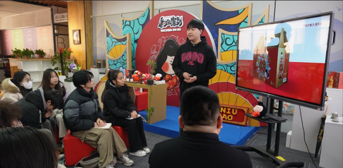 场景创新的核心,是让学习回归真实问题。不同于传统教室授课,这门课程将课堂直接设置在商业终端、产业一线与乡村田野,构建起“三维实景教学场”。在西安大悦城快闪店,10余名师生化身“品牌导购+市场研究员”,一边向消费者推介《秦风唐韵》茶礼,一边收集市场反馈,将设计理念、品牌营销等专业知识融入真实交易场景;茶礼的创意源头则来自“赛事场景”——学生张焜仪在“新光奖”IP+主题大赛中,以“茯茶金花+秦唐文物”为灵感设计的作品,经课堂打磨、企业协作最终落地量产。而在乡村振兴一线,学生团队深入长武、佳县等县区的田间地头,实地考察农产品特性、调研农户需求,为刀剺面、空心挂面等特产打造兼具地域特色与市场竞争力的包装设计,让课堂延伸至产业最末端。