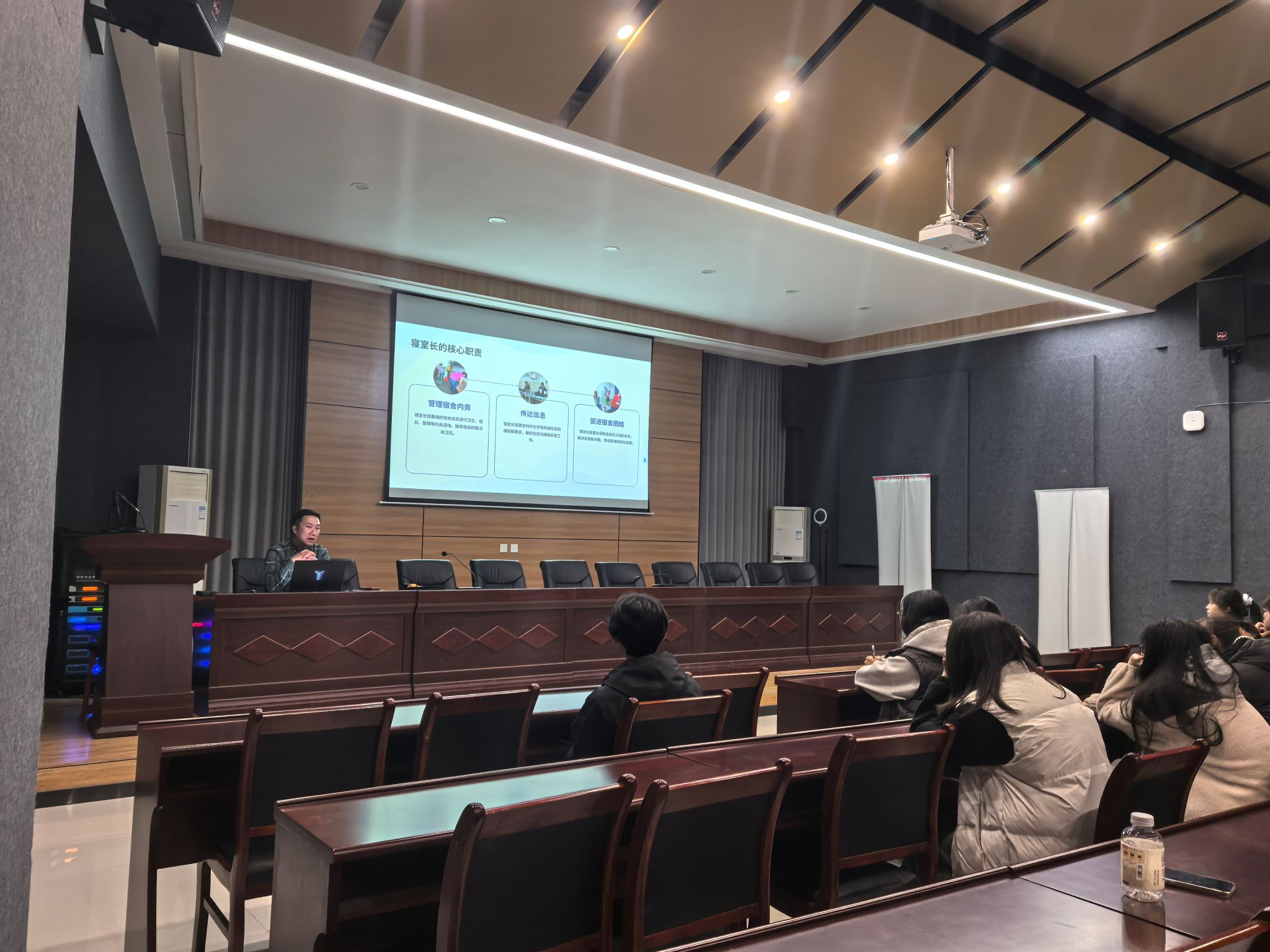 会上.魏老师围绕寝室长角色定位、寝室文化营造、寝室长如何培养沟通与协调能力、宿舍管理与评比和寝室安全注意事项工作五个方面展开深入阐述,强调寝室长在寝室文化建设中要做好统筹协调,寝室长作为寝室的领头羊,要规范自身,带动他人,做好模范引领作用。同时,寝室长要与舍友团结合作,互相监督,做好组织协调工作,共同创建一个和谐友爱、文明健康的宿舍环境,作为信息员、网格员关注室友日常情绪变化,作为危机预警哨兵识别危机倾向并及时上报。通过真实案例的分享,强调了寝室长是宿舍情感与信任的枢纽,不仅要做好信息传达,更要发挥“信息传递员”作用,切实筑牢宿舍安全防线。