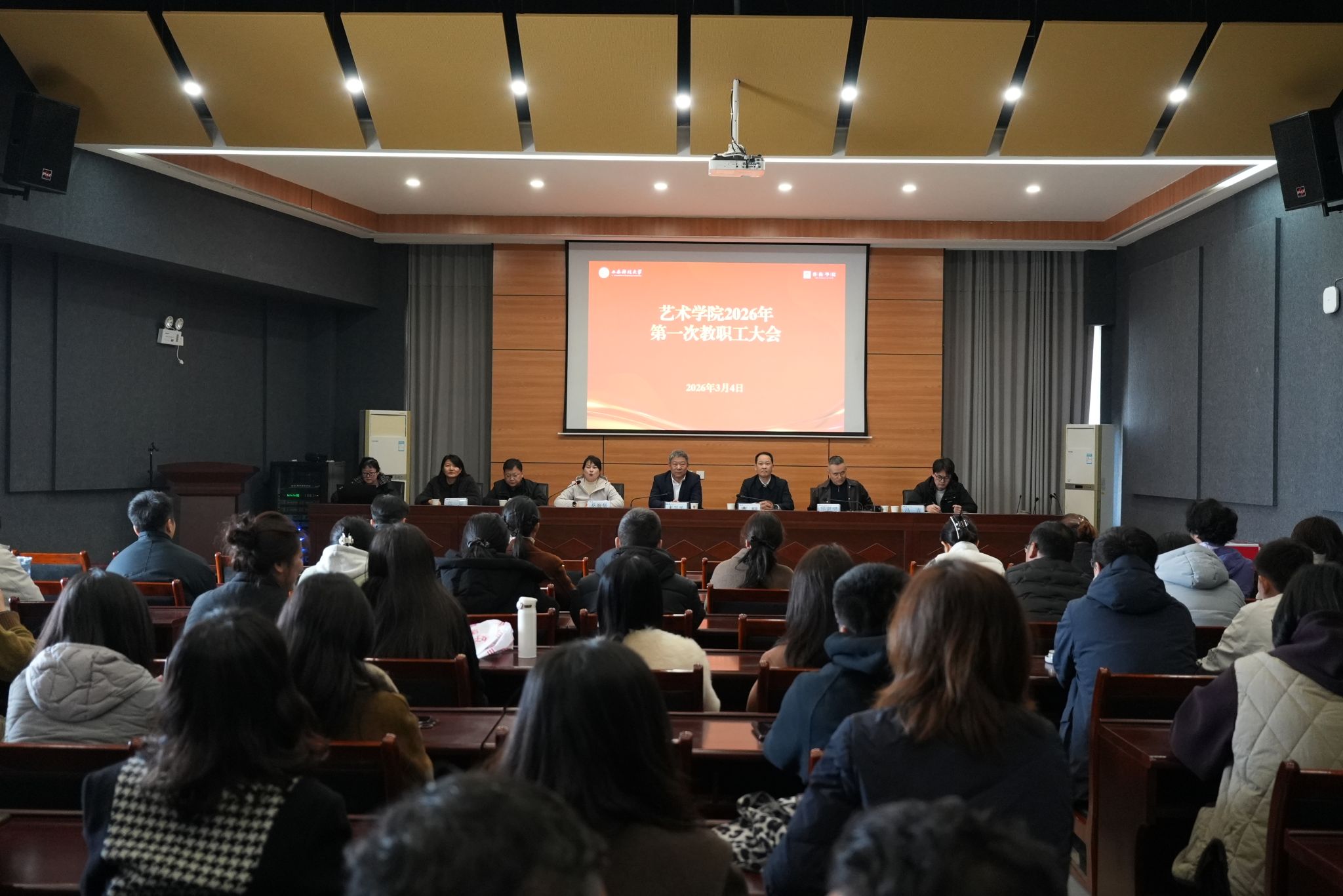 3月4日,艺术学院在秦汉校园召开全院教职工大会,校党委书记来兴平、副校长曹明出席大会并发表讲话,学院全体教职工参加,院党委书记岳海华主持会议。