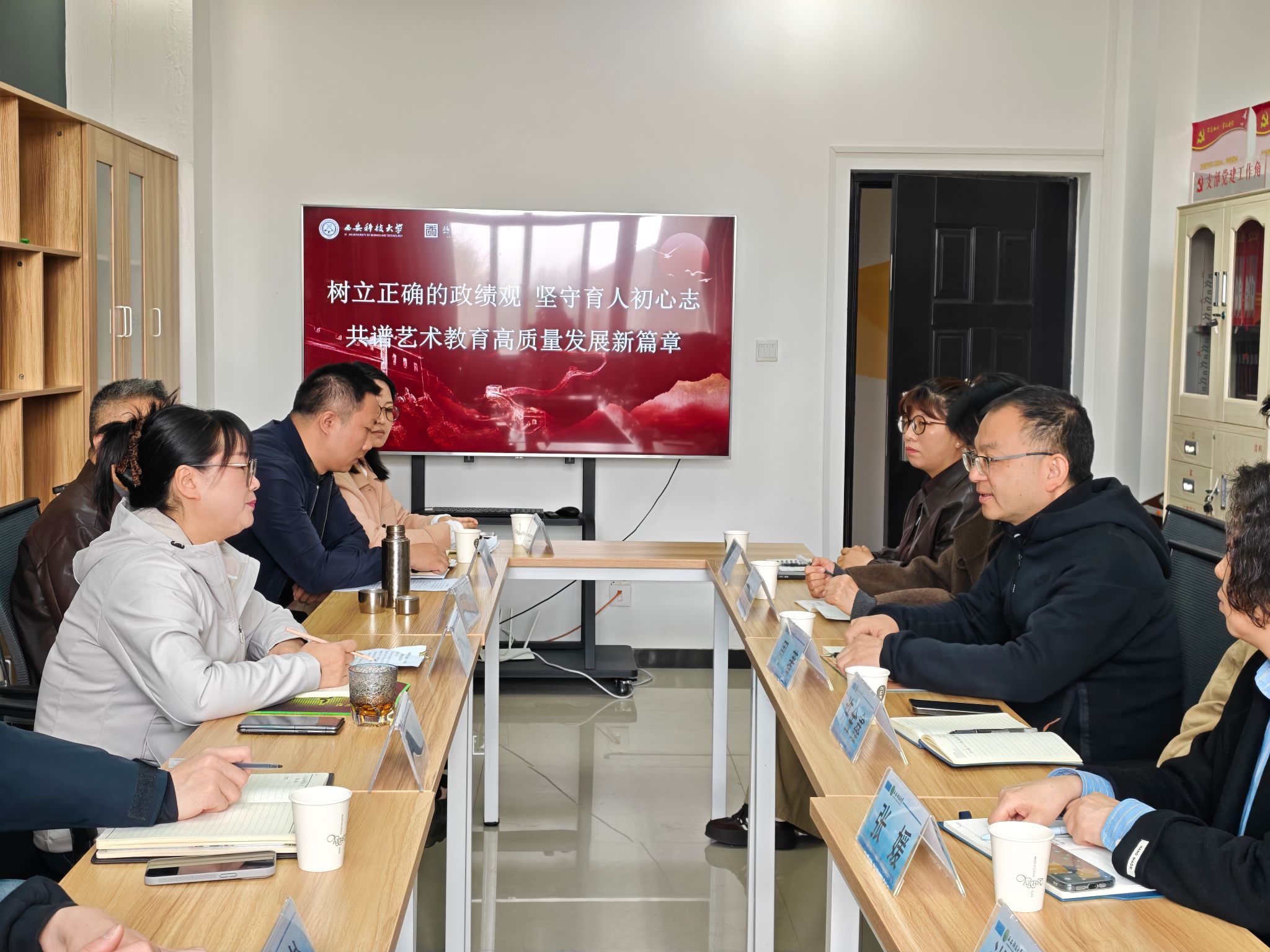 最后双方围绕“党建双创与艺术学科建设深度融合”“艺术人才培养提质增效”“美育创新实践提升”等核心议题展开深入交流,就破解融合堵点、提升基层党组织组织力、打造艺术特色党建品牌、培育高素质艺术人才等方面交换了意见建议,凝聚了育人共识。
